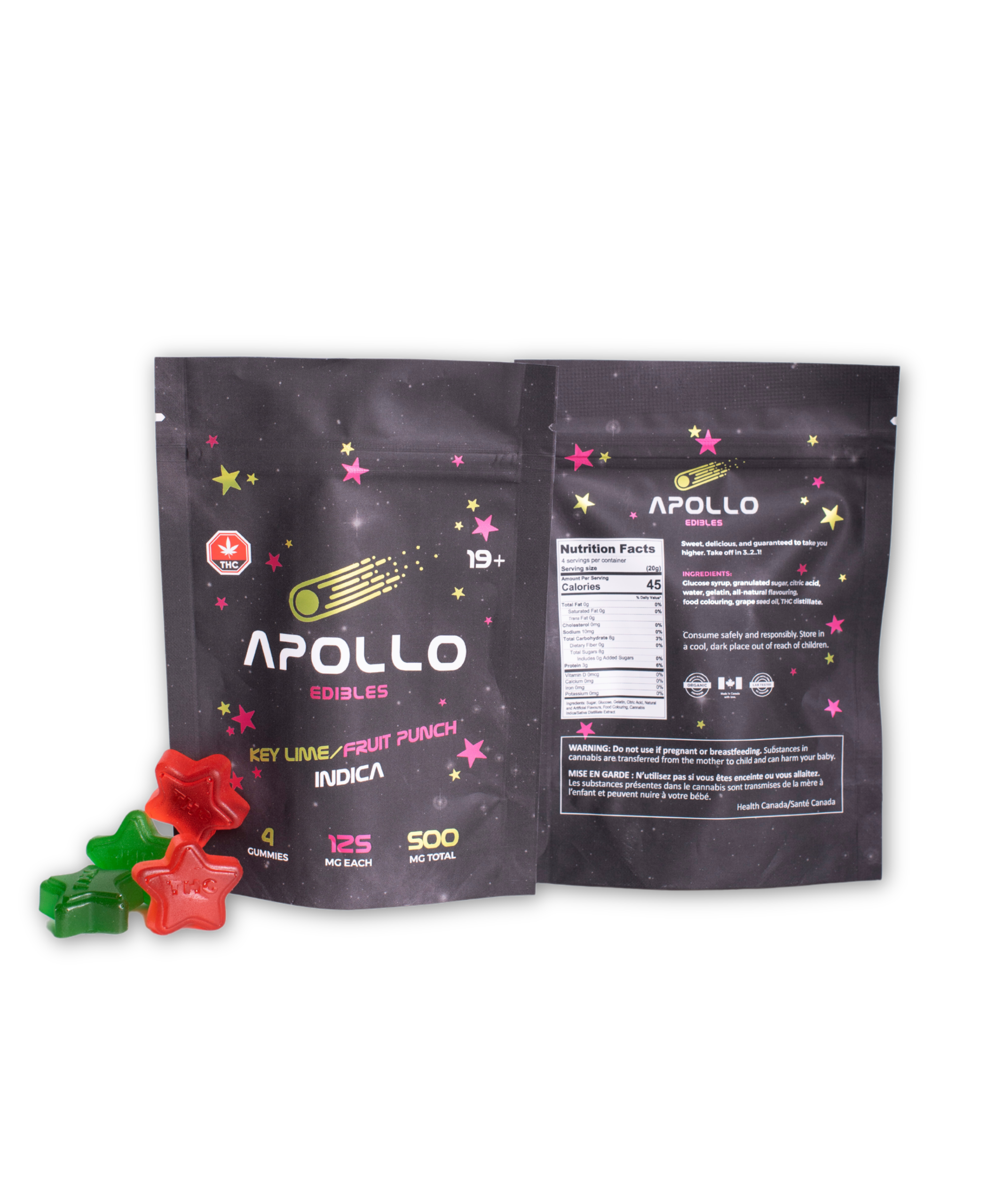Blast off with high dosage Apollo Shooting Stars Gummies made locally in British Columbia, crafted with premium quality ingredients and top of the line THC oil. Take these Indica dominant infused gummies for and amazing euphoric experience or for those suffering with medical conditions such as chronic pain, insomnia, and anxiety. Apollo gummies features explosive flavors and are easily dividable into 5 pieces for a wide range of tolerances. Take a star and get ready to enter another headspace!