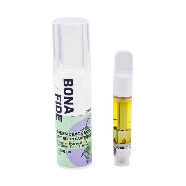 Bonafide premium Live Resin cartridges. Experience the entourage effect. This cartridge contains 1000mg of THC and other cannabinoids. We do not add any PG, VG, PEG, or MCT oil. Our customers’ health and safety are very important to us. Laboratory tested for quality and consistency.