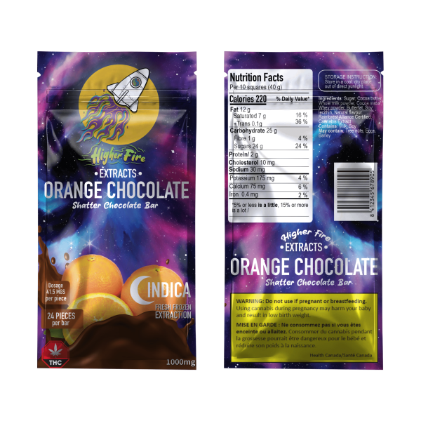 Higher Fire Extracts – Shatter Chocolate Bar – Orange 1000mg THC (Indica)